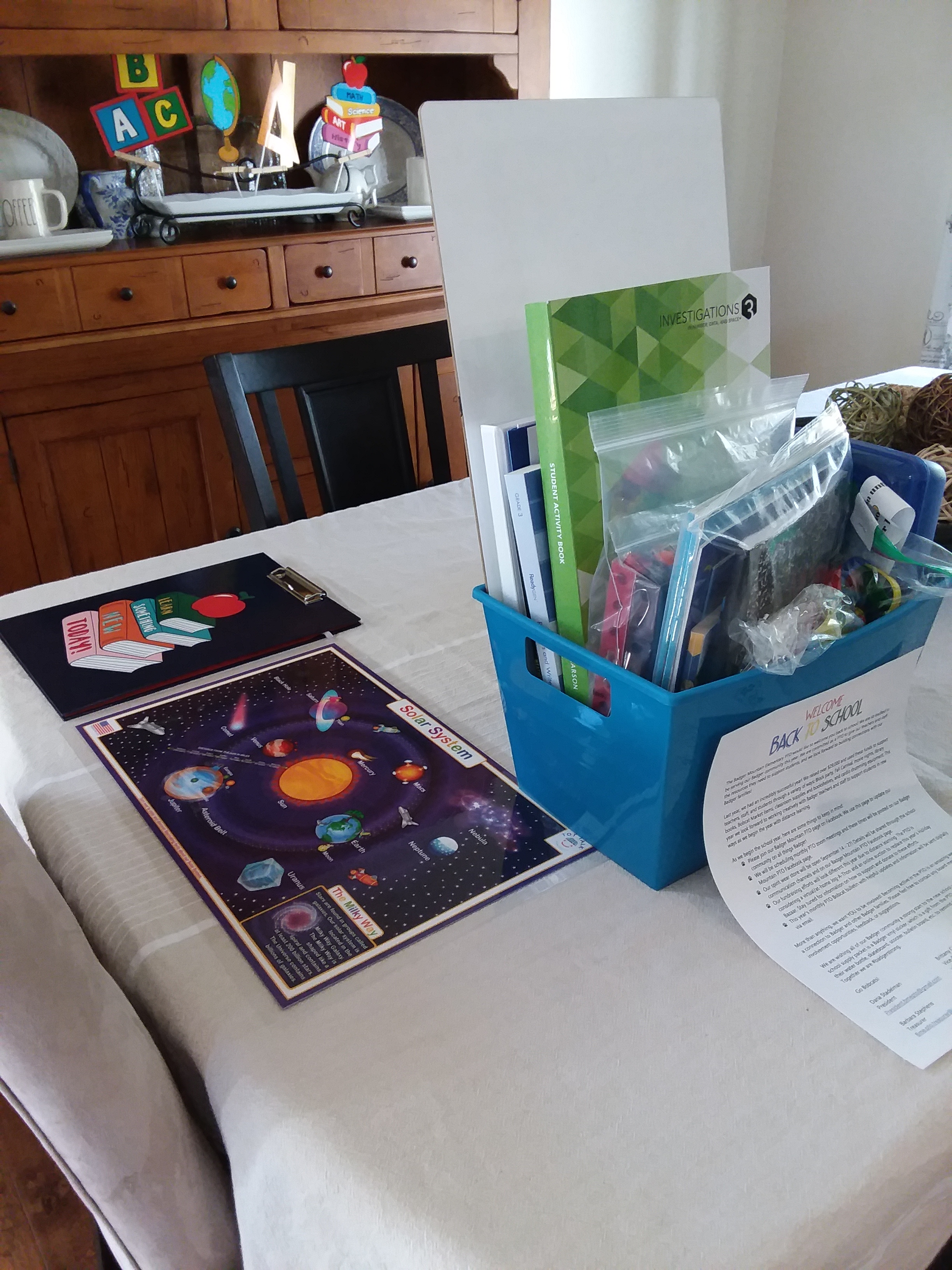 Recently Grammy had an epiphany that we needed to adjust our attitude and rather than rail against the school district and the pandemic, we need to take some control of the situation. We (Grammy and Grandpa) have been on this planet for over six decades, are educated, and have plenty of life experience to share. Grammy is an artist and reader, a very creative person. She is transforming our dining room (not used much during COVID) into a classroom and bought supplies. Yesterday she scoured the web for appropriate books. We have an excellent WiFi network and technology, so the hope is to make our dining room a place for him to go on a routine basis for his on-line schoolwork and additional learning with Grammy and Grandpa. Consistency and routine are important for kids on the autism spectrum.