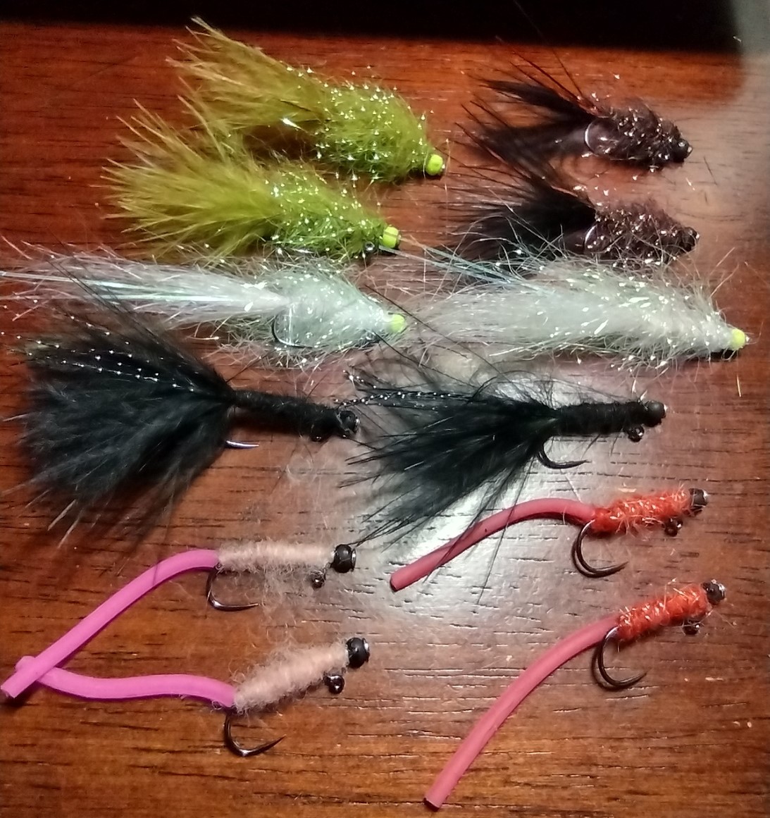 Since my last post and before the Holidays brought winter colds to our house (shared by all), I spent an afternoon playing with another style of flies that I never tied before – balanced flies. I’d never really had a use for them in NY where I rarely fly-fished lakes*. If you are unfamiliar with balanced flies, they are tied on jig hooks with the eye bent down below the plane of the hook shank.